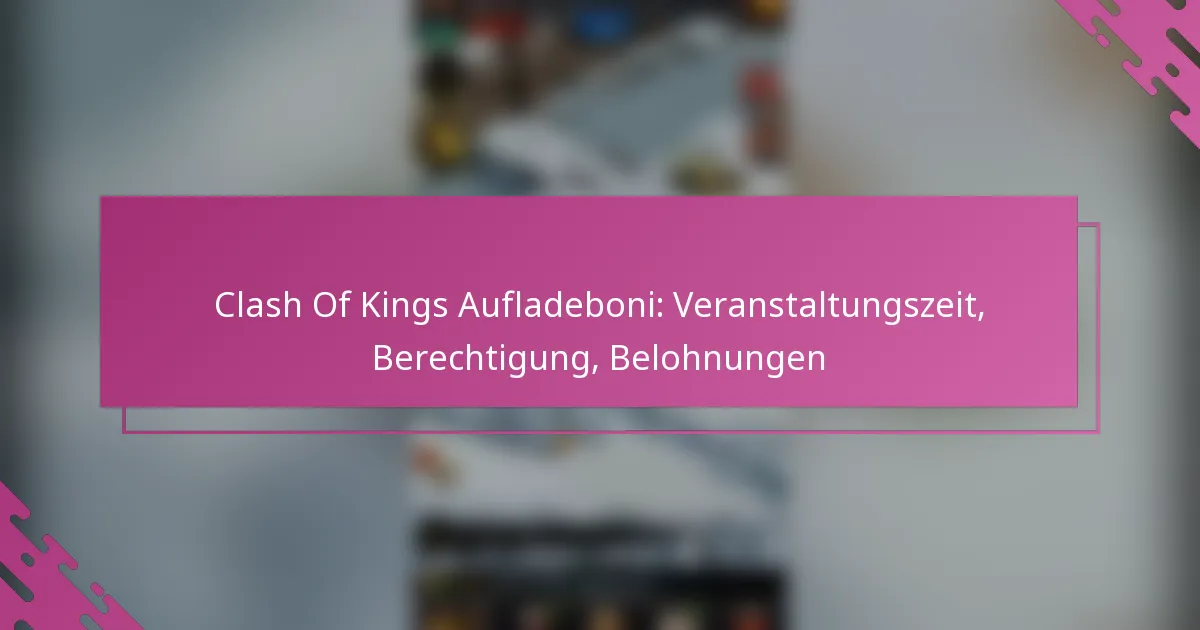 Die Aufladeboni von Clash of Kings sind spezielle Anreize, die dazu dienen, Spieler für In-Game-Käufe zu belohnen und ihr gesamtes Spielerlebnis zu verbessern. Diese Boni sind während bestimmter Veranstaltungen verfügbar und ermöglichen es den Spielern, ihre Belohnungen basierend auf ihrem Kontostatus und den Aufladebeträgen zu maximieren. Die Berechtigung variiert, aber sowohl neue als auch zurückkehrende Spieler können von diesen Angeboten profitieren, wenn sie bestimmte Kriterien erfüllen.